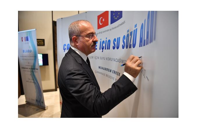 Programda söz alan Çanakkale Belediyesi Su ve Kanalizasyon Müdürü Doruk Özdemir ise proje içeriğine ilişkin bilgilendirmede bulundu. Özdemir; “Bugün burada, Çanakkale'mizin su yönetim vizyonunu güçlendiren, çevresel sürdürülebilirliğe katkı sunan ve geleceğe yönelik bu önemli adımı birlikte paylaşmak üzere bir araya geldik. Çanakkale Belediyesi olarak gerek susuzlukla mücadele gerekse kaynak çeşitliliği oluşturma adına acil durumlarda kullanmak üzere su kuyuları açıyor ve bunları sistemimize entegre ediyoruz. Rol model olarak “Japonya” ve “Singapur'daki sistemleri inceliyor ve kentimize uygun olan yönlerini sistemimize dahil ediyoruz. Bugün burada toplandığımız “BLUEC – Yeni Ufuklara Doğru Döngüsel Adımlar” Mavi Döngünün sürdürülebilirliği projesi, Avrupa Birliği hibe desteği ile 1000 proje arasından seçilen 24 projeden biridir. 672.322 euro bütçeye sahip bu proje, Birleşmiş Milletler Kalkınma Programı desteği ile Belediye Başkanımız Sayın Muharrem Erkek'in katılımıyla başlamıştır” dedi.