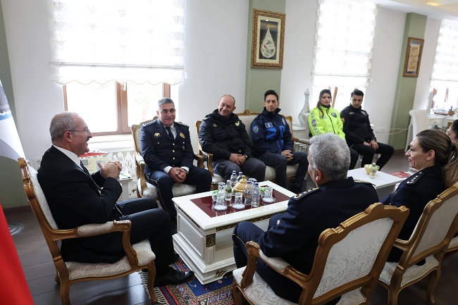 Türk Polis Teşkilatı’nın 181. kuruluş yıl dönümü ve Polis Haftası dolayısıyla; İl Emniyet Müdürü Ergün Dağıstanlı, Deniz Polis Eğitim Merkezi Müdürü Ayhan Karaduman ve beraberindeki emniyet personeli, Çanakkale Valisi Doç. Dr. Ömer Toraman’ı makamında ziyaret etti.