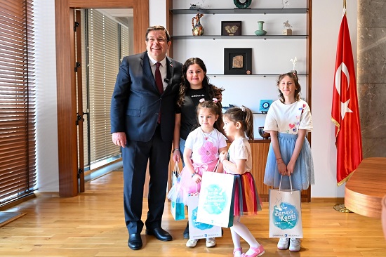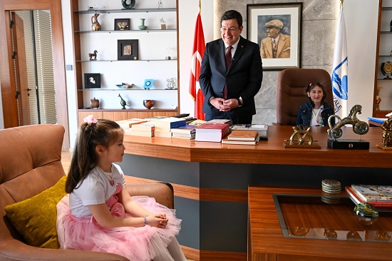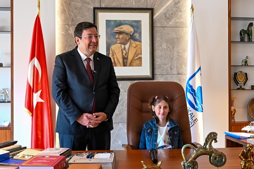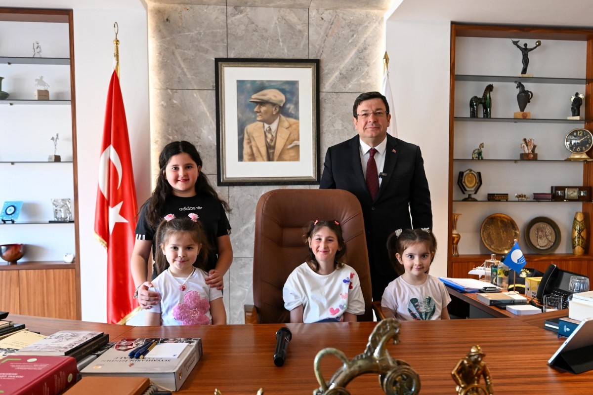 Çanakkale Belediye Başkanı Muharrem Erkek, 23 Nisan dolayısıyla makam koltuğunu Fen İşleri Müdürlüğü personeli Samet Uyanık’ın kızı Güneş’e teslim etti. Ziyarette minik başkanın kardeşleri Asya, Zeynep ve Cemre de yer aldı.