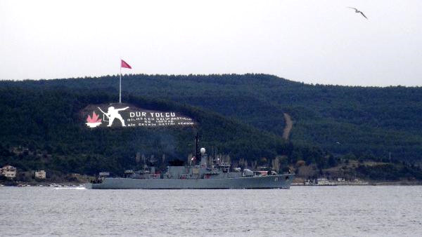 Bulgar savaş gemisinin boğaz geçişine, güvenlik escortlar izmiriyle Türk Sahil Güvenlik Botu eşlik etti.